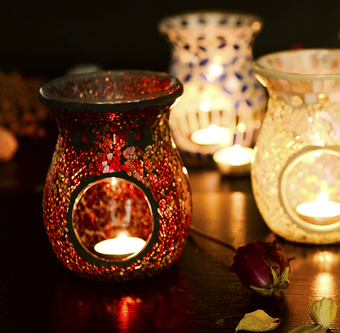 Handmade Mosaic Glass Aroma Lamp Oil Burner for Yoga Office & Home Use